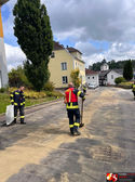 Freitag, 01. August, um 13:11 Uhr wurde zu einer Ölspur ausgerückt. Bei einem LKW ist die Hydraulikleitung gerissen, wodurch mehrere Liter Betriebsmittel ausgetreten sind und die Fahrbahn verunreinigte. Wir führten die Straßensicherung und Bindearbeiten durch, wobei uns die Gemeinde tatkräftig mit der Kehrmaschine unterstützte.