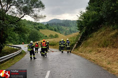 Nachdem Gewitter und Sturm über uns gezogen war, kam der Alarm, das Richtung Reichenstein auf der Aisttalstraße Naarnwegtal Bäume über der Fahrbahn liegen. Nach freimachen und Reinigung wurden an zwei weiteren Stellen die Fahrbahn freigemacht